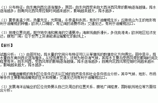 (2)甲国是世界上著名的橄榄油生产和出口国,请分析该国种植油橄榄的有利区位条件。