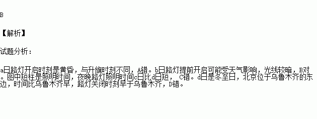 B.b日路灯提前开启可能受天气影响