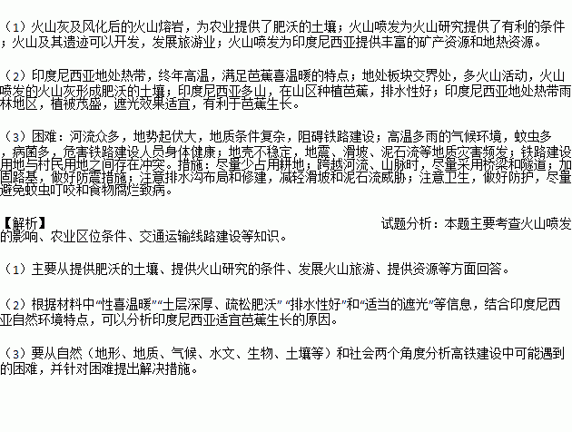 (1)试分析火山喷发对印度尼西亚的有利影响。