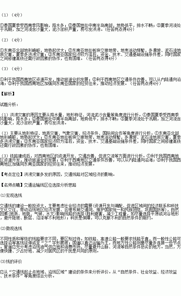 (3)分析东南亚泛亚铁路建成后对我国西南地区经济发展的有利影响。(4分)