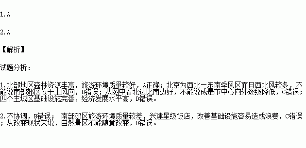 有关部门研究了北京市自然生态环境、经济发展水平、基础设施等方面因素后,得出旅游环境质量空间分布状况,如图所示。读图,回答下列问题。