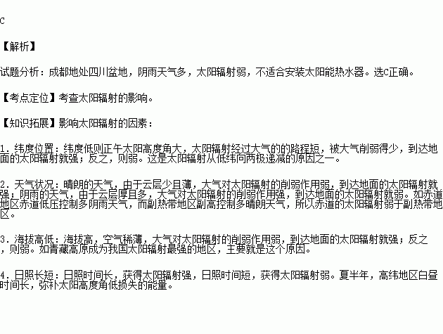 以下各地中,太阳能热水器销售情况最不理想的可能是( )