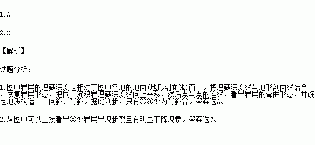 下图是某地地形剖面及其地下同一沉积岩层埋藏深度示意图。岩层的埋藏深度(岩层距离地面的垂直距离)可以用来帮助恢复岩层的形态。读图回答问题。