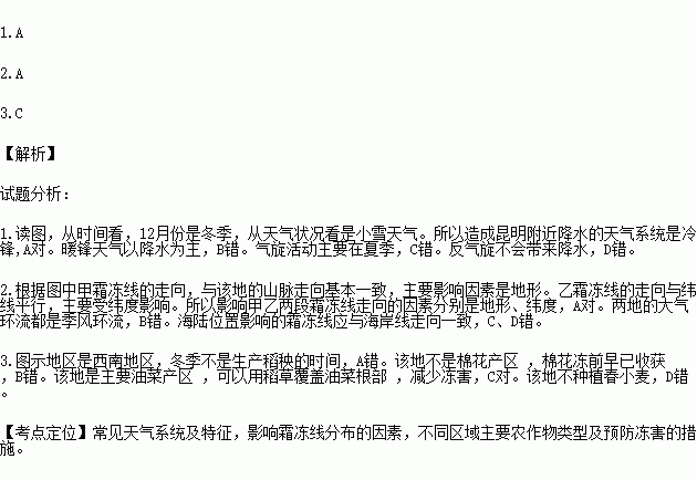 1.造成昆明附近降水的天气系统是