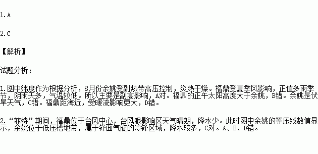 1.2013年8月余姚平均气温高于福鼎,其主要成因是