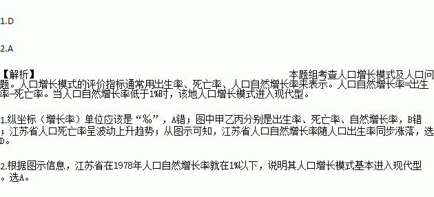 下图为1978—2015年间江苏省人口自然增长统计图(依据江苏省2016年统计年鉴)。据此回答下列各题。