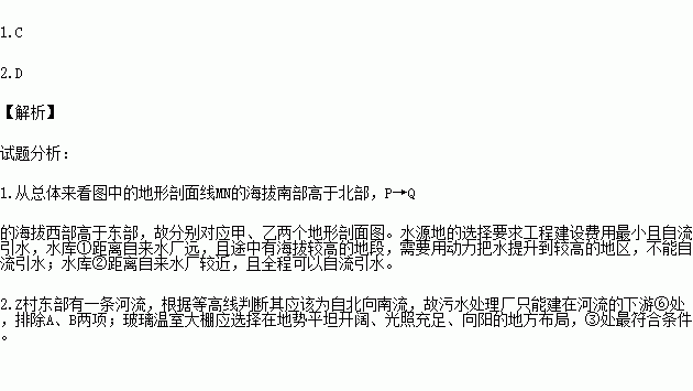 下图是某地地形图MN、PQ是地形剖面线。①、②是水库,若从中选择一个作为自来水厂的水源地,其条件是自流引水且工程建设费用最小。完成下列各题。
