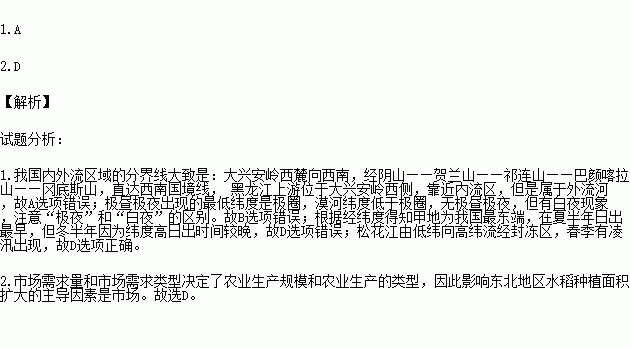 2.近年来,东北地区水稻种植面积不断扩大,主要原因是