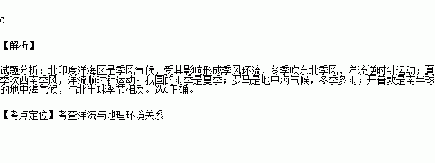 当印度洋海区洋流呈顺时针方向流动时( )