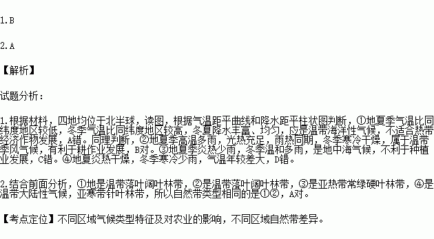 1.¹ØÓÚËÄµØÆøºòÌØµã¼°Æä¶ÔũҵÉú²úµÄÓ°ÏìµÄÐðÊö£¬ÕýÈ·µÄÊÇ