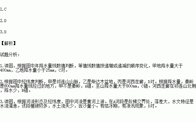 ¶ÁÎÒ¹úijµØÇøÄ꽵ˮÁ¿·Ö²¼Í¼£¬»Ø´ðÏÂÁи÷Ìâ¡£