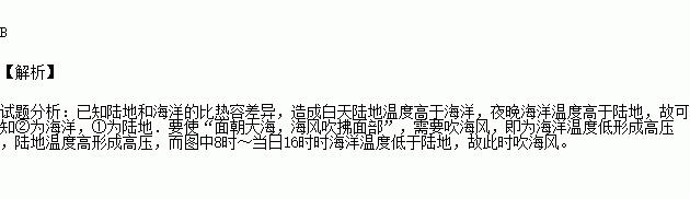下图表示的是某滨海地区陆地和海洋表面气温日变化的曲线图。影视片中往往让女主角面朝大海,海风吹拂面部,让头发向后飘逸以反映女主人翁的快乐心情,如果你是导演你会选择什么时间段来拍摄该情境( )