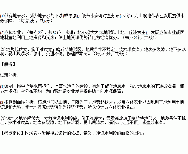 (2)指出该地区农业布局模式,并说明设计该模式的依据。