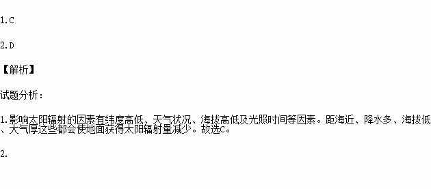 1.甲地太阳辐射量多,主要原因可能是( )![]()