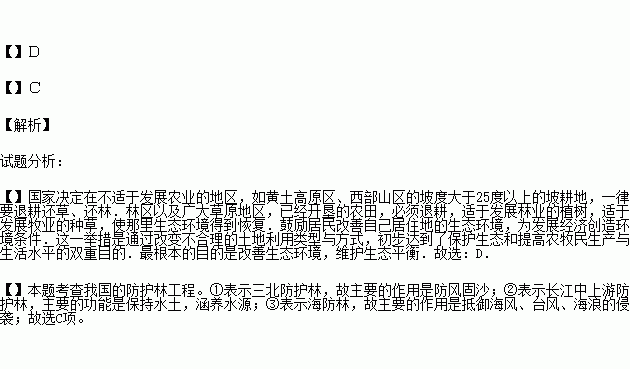 1.国家大力推行“退耕还林”政策的直接目的是