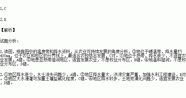 1.立足于农业可持续发展,最适合农牧结合发展的地区是