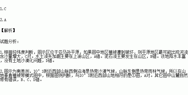 1.如果图中地区植被遭到破坏,则平原地区最可能出现 ( )。