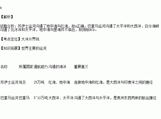 A.地中海和红海 B.太平洋和大西洋
