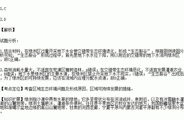 2.“生态裂谷”出现后,为了绿洲区的可持续发展,应该( )