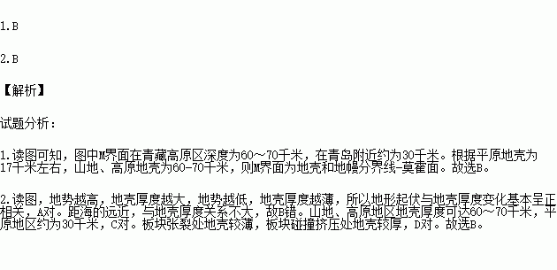 C.山地、高原的地壳厚度较平原、盆地地区厚