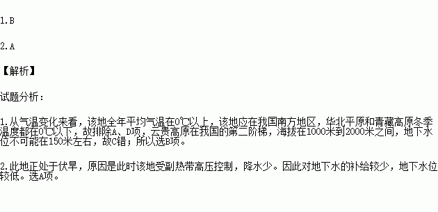 D. 受冬季风影响,降水少,地下水位低