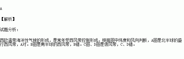 下列四幅风带图中,对西欧温带海洋性气候的形成有重要影响的是