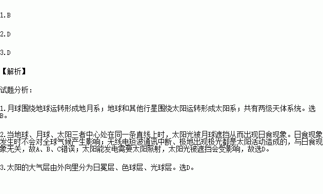 2015年3月20日出现了近16年来最大的一次日食。欧洲部分地区民众欣赏到了一场盛大的日食奇景。读“日食发生时太阳、地球和月球位置示意图”,回答下列问题。