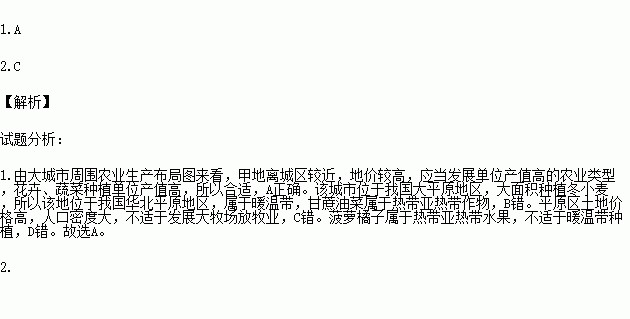 ũҵÉú²úµÄ²¼¾ÖÍùÍùÒò³ÇÊжø·¢Éú±ä»¯£¬¾à³ÇÊÐÔ¶½ü¾àÀëµÄ²»Í¬£¬Ò²ÍùÍùÐγɲ»Í¬µÄũҵÉú²úÀàÐÍ¡£ÏÂͼΪÎÒ¹úij´óƽԵØÇø´ó³ÇÊÐÖÜΧũҵÉú²ú²¼¾ÖʾÒâͼ£¬¸ÃƽԵØÇø´óÃæ»ýÖÖÖ²¶¬Ð¡Âó¡£¶Áͼ£¬»Ø´ðÏÂÁÐÎÊÌâ¡£