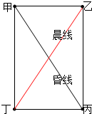 解:同一纬线上昼夜长短相同,甲丙昼长相差2小时,又甲丙为昏线,则该日甲乙纬线的昼长比丙丁纬线的昼长短2小时,同经线上的乙丙日出日落均相差1小时.由此可知乙地日落的北京时间比甲地早1小时,乙丁应在晨线上,丁丙日出日出的北京时间也应相差1小时,所以乙丁两地北京时间应同时看到日出.