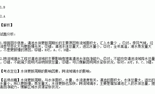 1.“滇池水脏与滇池水体更新周期长有关。滇池水体更新周期长的主要原因有( )