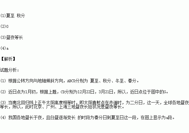 (4)在________段时,我国各地昼长于夜,且白昼逐渐变长(填字母)。