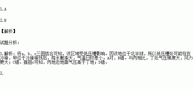 下图中图a为北半球某区域图,图b示意沿甲乙线的气压变化,图c示意沿丙丁线的气压变化。据此回答下列问题。