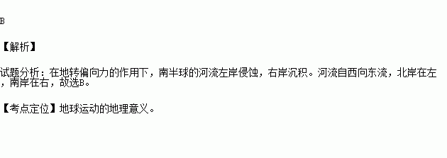 下图中阴影部分为河流堆积物,受地转偏向力的影响,正确表示南半球河流自西向东流的是( )