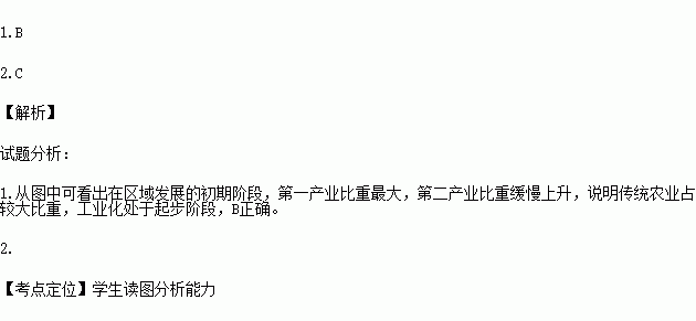 2.上图中A、B、C各点分别代表区域发展不同时期的产业结构特征。从区域发展的过程来看,其正确的顺序应该是