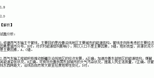 1.下列因素中,修建西气东输主干管线走向所考虑的主要经济因素是