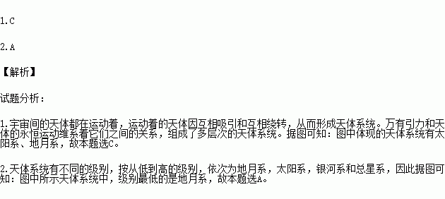 2.图中所示天体系统中,级别最低的是