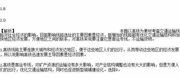 中国四纵四横高铁主干线已经基本建成,截至2015年底,中国高铁里程达到1.9万公里,位居世界第一。读图完成下列各题。