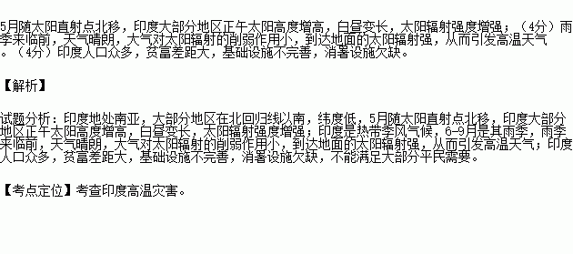 分析印度每年5月高温灾害严重的原因。