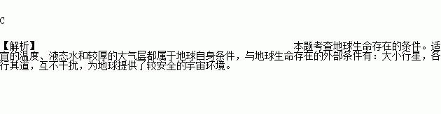 D.具有丰富的液态水,为生命的形成和进化创造条件