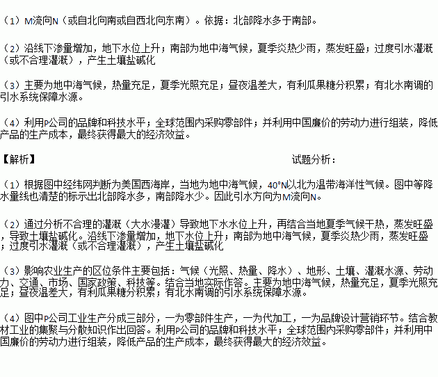 (2)调水工程使用一段时期后,沿线地区土地出现了盐碱化现象,请分析原因。