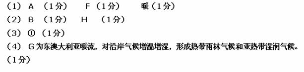 (4)简要说明G洋流对澳大利亚东海岸地区气候的影响。
