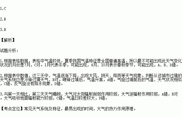 2.这三天中,从该城市过境的天气系统是 ( )