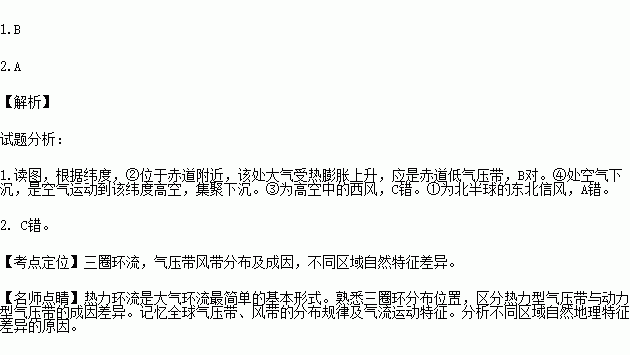 2.当④形成的气压带被大陆上的气压中心切断时