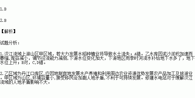 1.若在汉江乙水库以上河段大力发展水稻种植业,可能会出现的情况是