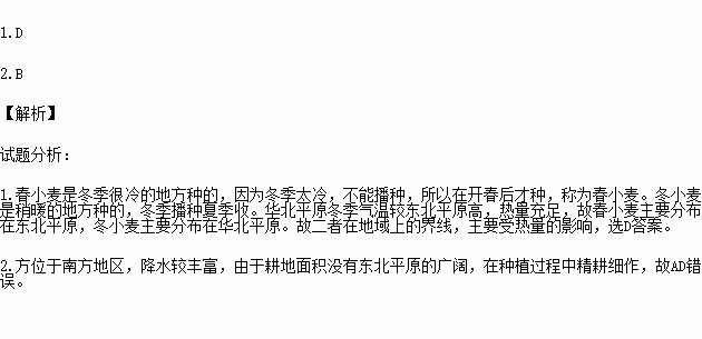 1.图的左下角有一实线为我国春小麦与冬小麦在地域上的分界线,影响其分布的主要自然因素是( )
