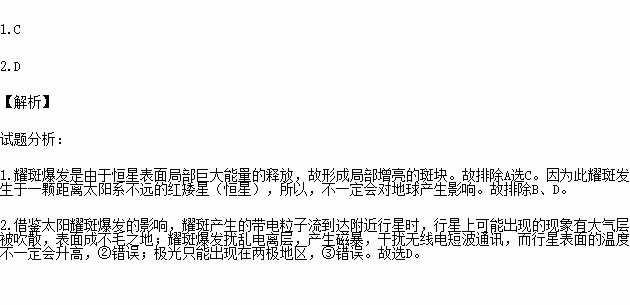 2.此次耀斑产生的带电粒子流到达行星表面时,行星上可能出现的现象有