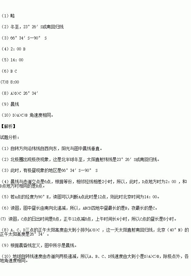 ⑷此时,D点地方时为 时,和D点地方时相同的是_____________点。