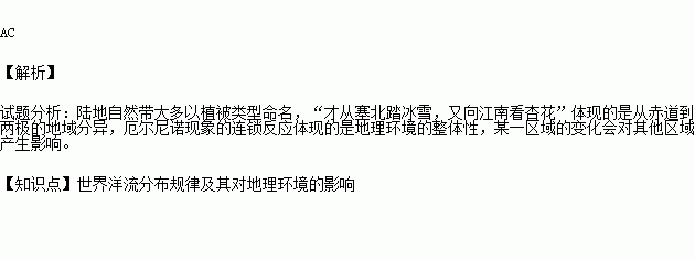 C、厄尔尼诺现象的连锁反应体现的是地理环境的整体性