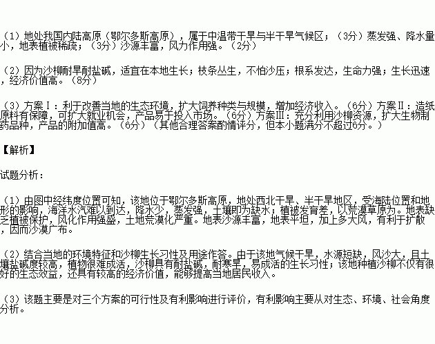 (2)据右图及提供信息,说明在该地固沙保土选种沙柳的原因。