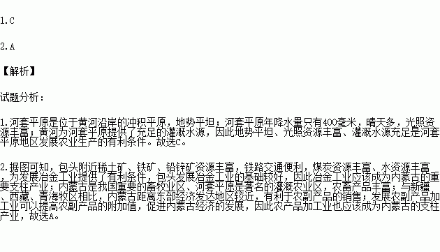 1.河套平原是内蒙古的主要农业区,其发展农业的优势条件是